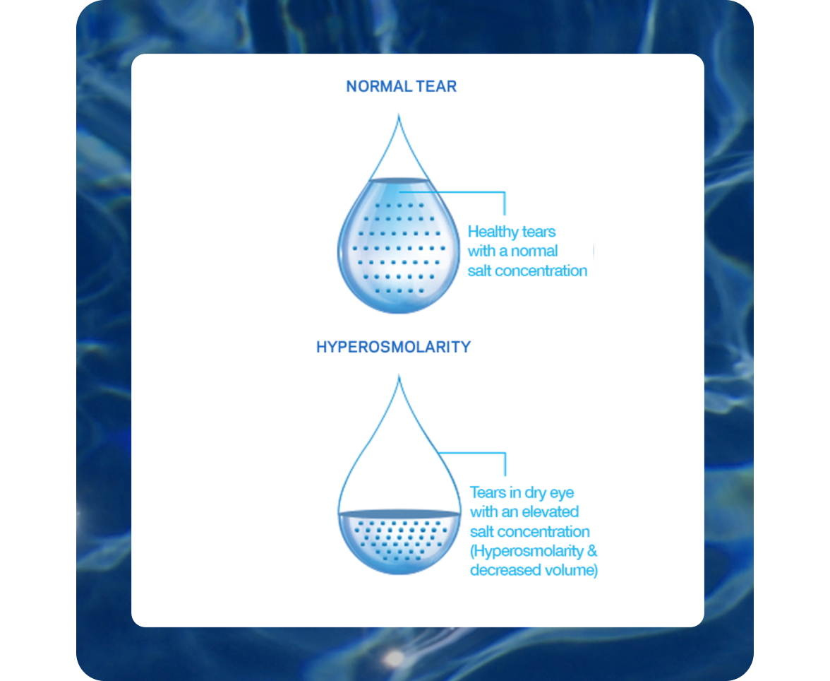 Tear osmolarity is a measure of the salt content of a person's tears. Hyperosmolarity is when the salt concentration in your tears is too high. Excess salt in tears can cause an imbalance in the water and oil layer, causing dry eye and that irritated feeling that may be familiar to you.